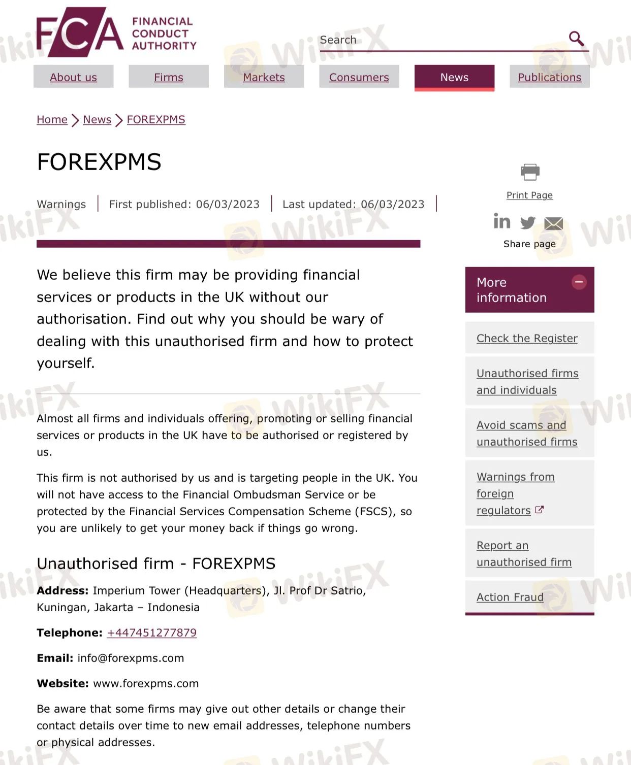 وفقًا لـ FCA ، لا يحق للوسيط تقديم خدمات مالية. في الواقع ، صرحت هيئة السلوك المالي (FCA) أنه ليس وسيط مرخص ، وبالتالي لن تحصل على أي حماية. تثبت مثل هذه التحذيرات بشكل شبه مؤكد أن شركة ما تقوم بنوع من عمليات الاحتيال - لذا امتنع عن اختيار الشركات المشبوهة التي حظيت بتقييم سلبي من السلطات المالية ذات السمعة الطيبة مثل FCA. الطريقة الوحيدة للتأكد من أن استثمارك في أيد أمينة وأنك ستعامل بإنصاف ووفقًا لجميع القوانين هي اللجوء إلى وسيط شرعي ومرخص.