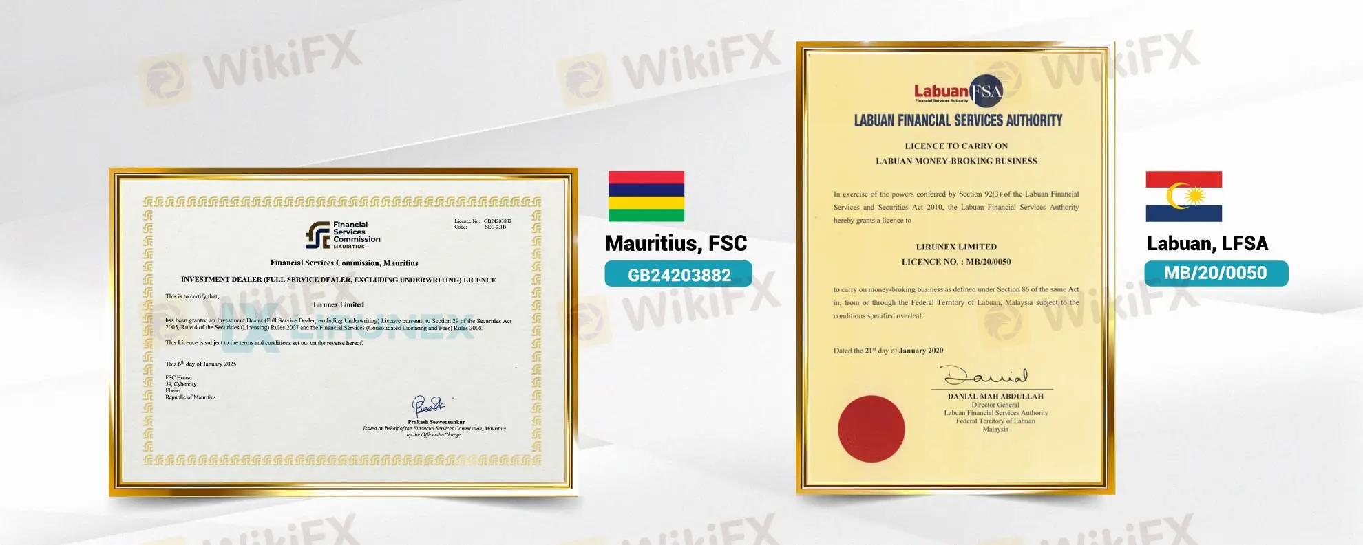 قبل حصولها على رخصة FSC في موريشيوس، كانت Lirunex مرخصة بالفعل ومنظمة من قبل هيئة الخدمات المالية في لابوان (LFSA). ويعزز الحصول على رخصة FSC التزام Lirunex بالحفاظ على معايير امتثال صارمة في مختلف الولايات القضائية. ويعكس هذا النظام المزدوج للترخيص نهج الشركة الاستباقي في التماشي مع الأط