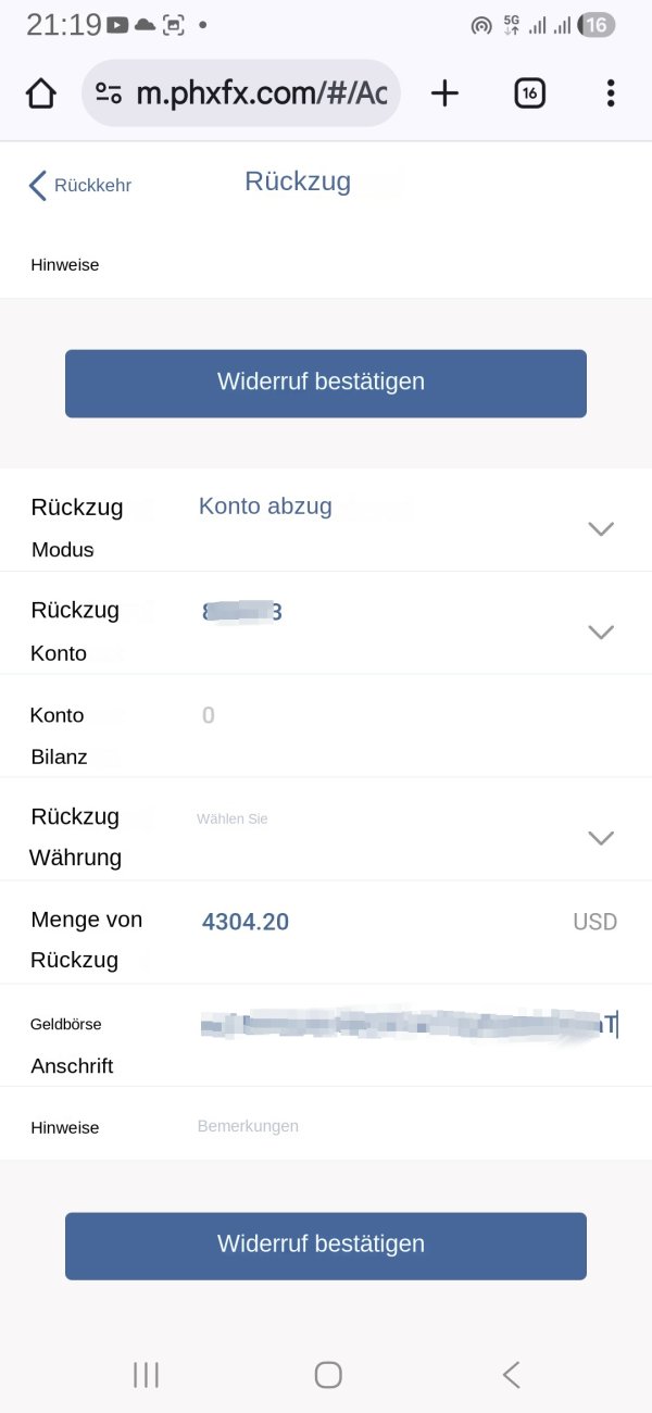 Einzahlung zum Handeln, aber keine Abhebung möglich, es ist ein Betrug, betrügerisch, keine Verantwortung. Der Einzahler und der Abheber haben die falsche Wallet-Adresse gemeldet, und das Unternehmen behauptet, die Auszahlung sei überwiesen worden. Es ist ein offensichtlicher Betrug.