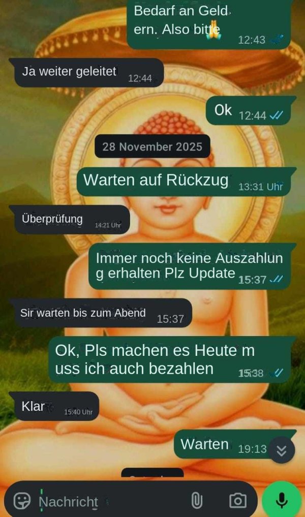 Sobald Sie Geld einzahlen, sind Abhebungen unmöglich. Sie drängen Sie ständig unter verschiedenen Vorwänden, mehr einzuzahlen, aber Abhebungen werden niemals erlaubt. Derzeit sind $57.000 gesperrt. Ich habe am 28. Oktober eine Abhebung von $27.000 beantragt, aber sie befindet sich noch in Überprüfung.