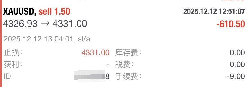我账号在2025.12.1213:04:01进场交易XAUUSD1.5手当价格在4023附近时,我手动操作了平仓动作。可是平台未能给我平仓。导致我亏损严重