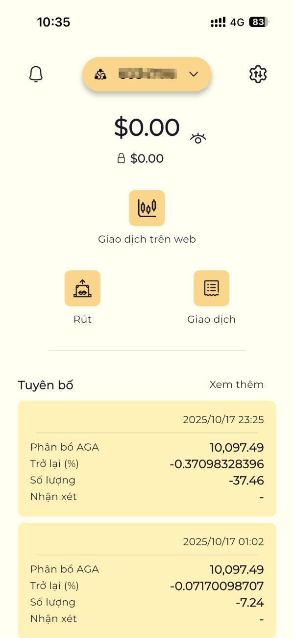 Tôi được mời gọi đầu tư vào nền tảng GoldFun thông qua các tài liệu quảng bá và thuyết trình, trong đó cam kết: Lợi nhuận ổn định hàng tháng (4% – 9%/tháng) Cam kết WIN 100% Có thể rút vốn gốc và lợi nhuận vào mỗi cuối tuần. GoldFun được quảng bá là được cấp phép/quản lý tại Hong Kong. Tin tưởng vào các nội dung này, tôi đã chuyển tiền đầu tư vào GoldFun. Tuy nhiên, đến thời điểm tôi yêu cầu rút tiền gốc và lợi nhuận, GoldFun: Không cho tôi rút tiền, không đưa ra thời hạn cụ thể Tự ý chuyển toàn bộ số tiền đầu tư của tôi sang AGA Việc chuyển tiền này hoàn toàn không có sự đồng ý, không có chữ ký hay xác nhận của tôi Hành vi này vi phạm nghiêm trọng quyền sở hữu tài sản của nhà đầu tư và đi ngược lại các thỏa thuận ban đầu. Dấu hiệu vi phạm nghiêm trọng Tự ý dịch chuyển tài sản của nhà đầu tư Không cho rút tiền gốc và lợi nhuận Sử dụng tài liệu quảng bá có dấu hiệu sai lệch, thổi phồng lợi nhuận Mô hình có dấu hiệu đa cấp tài chính trá hình dưới danh nghĩa PAMM/AI