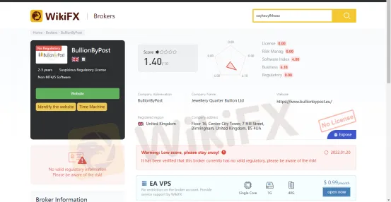 Abstract:As its website claims, BullionByPost is UK’s No.1 online bullion dealer. It is located in Birmingham city centre. BullionByPost is owned by a company called Jewellery Quarter Bullion Limited(JQB). BullionByPost mainly offers UK citizens and mainland European citizens a platform to buy bullion for investment. Their bullion products include gold bars, silver bars, gold coins and silver coins. It allows customers to either trade metals with BullionByPost or invests with the company. However, according to WikiFX, BullionByPost has some serious problems that you may need to pay attention to.