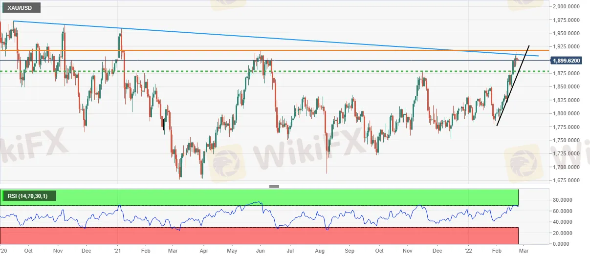 Abstract: Spot gold (XAU/USD) remains mildly offered around $1,900 during Wednesdays Asian session, following the U-turn from the highest levels since June 2021 flashed the previous day.
