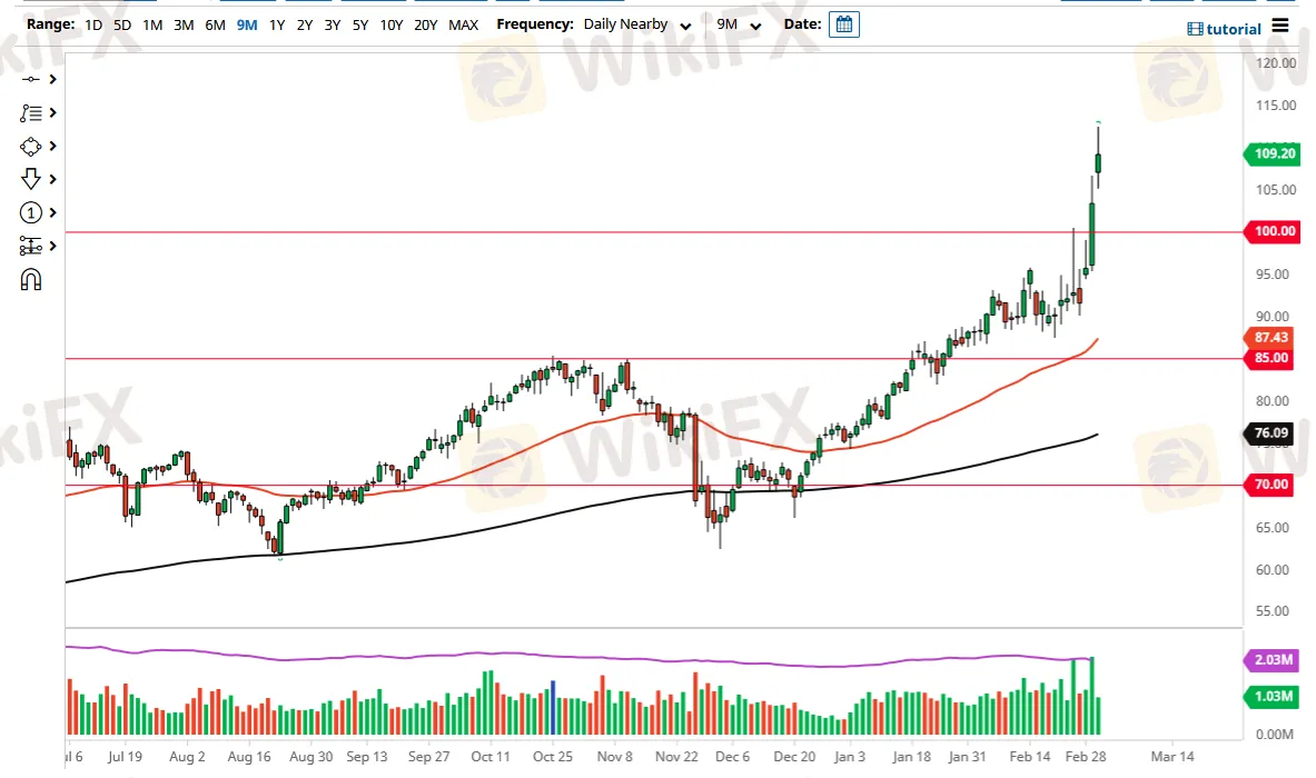 Abstract:I think that a lot of people will come back into the picture and try to take advantage of “cheap oil”, as this market almost certainly has much further to go due to a whole host of issues. The West Texas Intermediate Crude Oil market has gapped higher to kick off the trading session on Wednesday and then shot straight towards the $112.50 level. This move was rather alarming, as crude oil has been completely off the rails for a while. Now that we have broken through the $100 level rather handily over the last couple of sessions, it does make sense that we need to pull back.