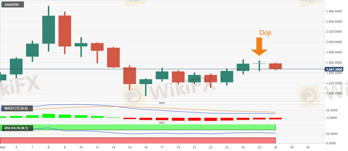 Abstract:Gold (XAU/USD) takes offers to refresh intraday low around $1,945 while snapping a three-day uptrend during Mondays Asian session.