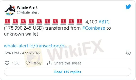Separately, 4,100 Bitcoins worth $178,865,674 were shifted from a Gemini address to Coinbase too, which were later withdrawn from it to an unknown address.