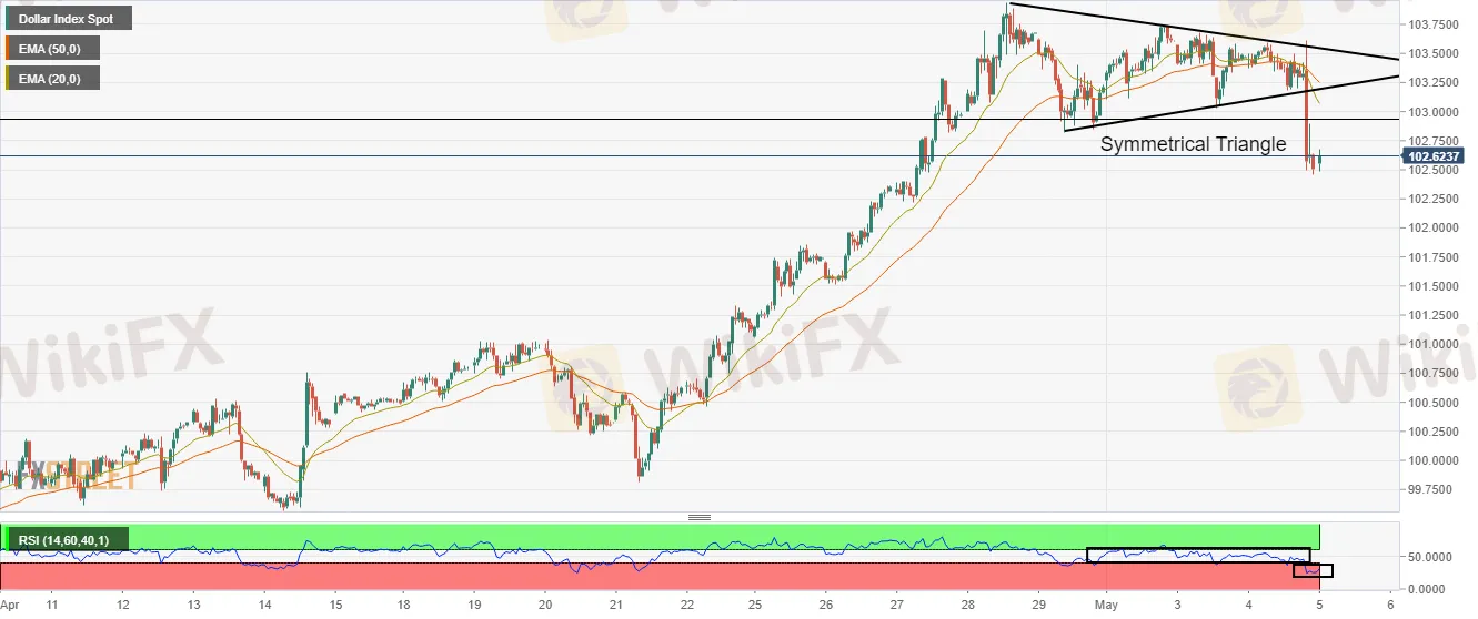 The US dollar index (DXY) has witnessed a steep fall after failing to sustain above the round level support of 103.00. The DXY plunged sharply after the Federal Reserve (Fed) announced its monetary policy on Wednesday. The asset printed its 19-year high at 103.93 and faced a tad longer consolidation has resulted in a bearish reversal.