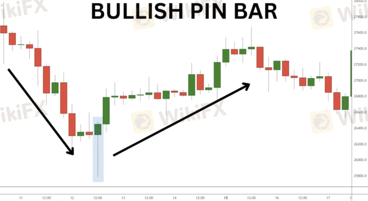 The pin bar is one of the most reliable single K-line shapes, which is characterized by a smaller entity but a longer shadow line, indicating a strong fall in price. The bullish pin bar (the lower shadow line is longer) indicates that the buyer rejects the lower price, indicating a potential upward reversal; the bearded pin bar (the upper shadow line is longer) indicates that the seller is dominant.