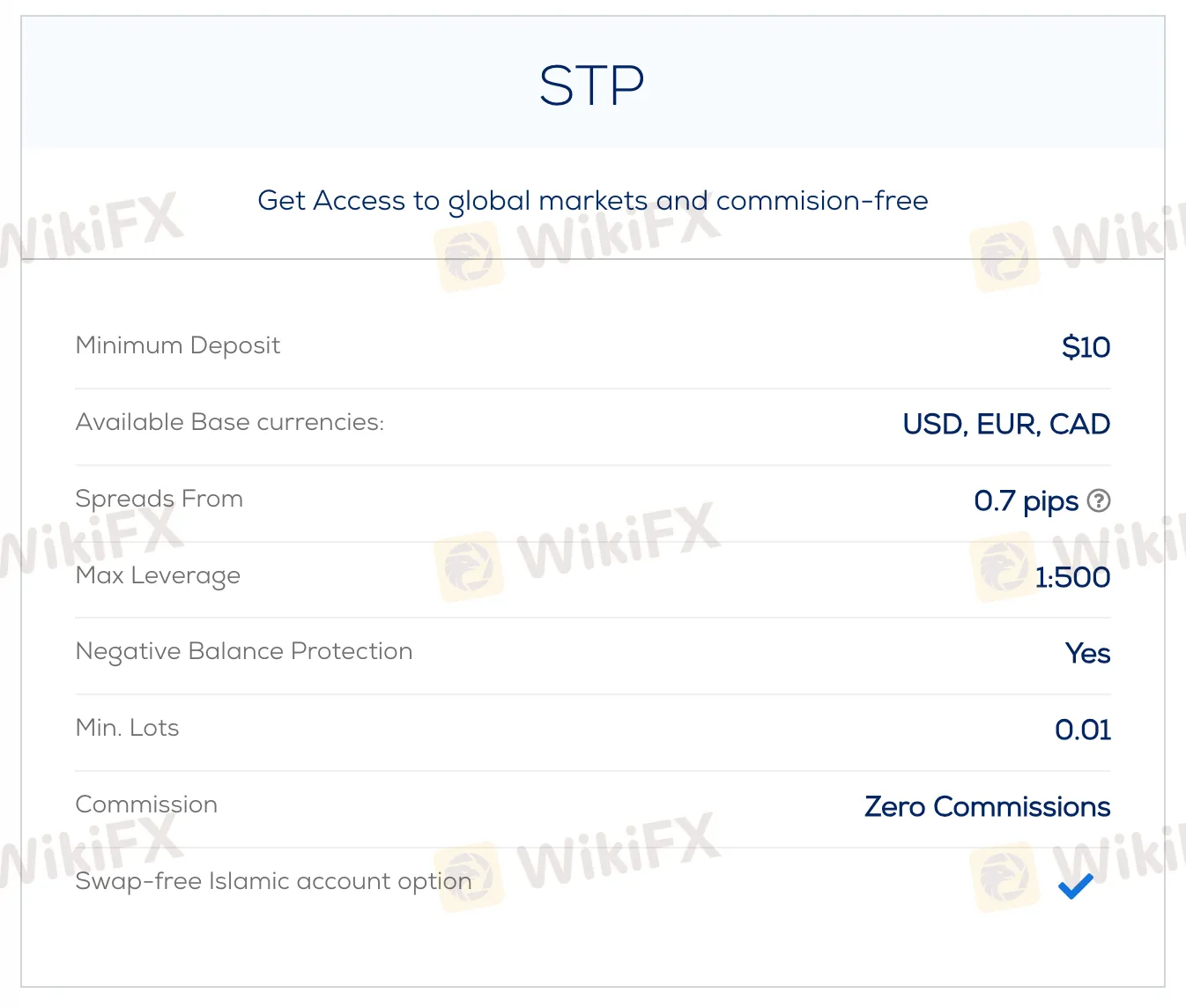 | STP | $10 | From 0.7 pips | None |