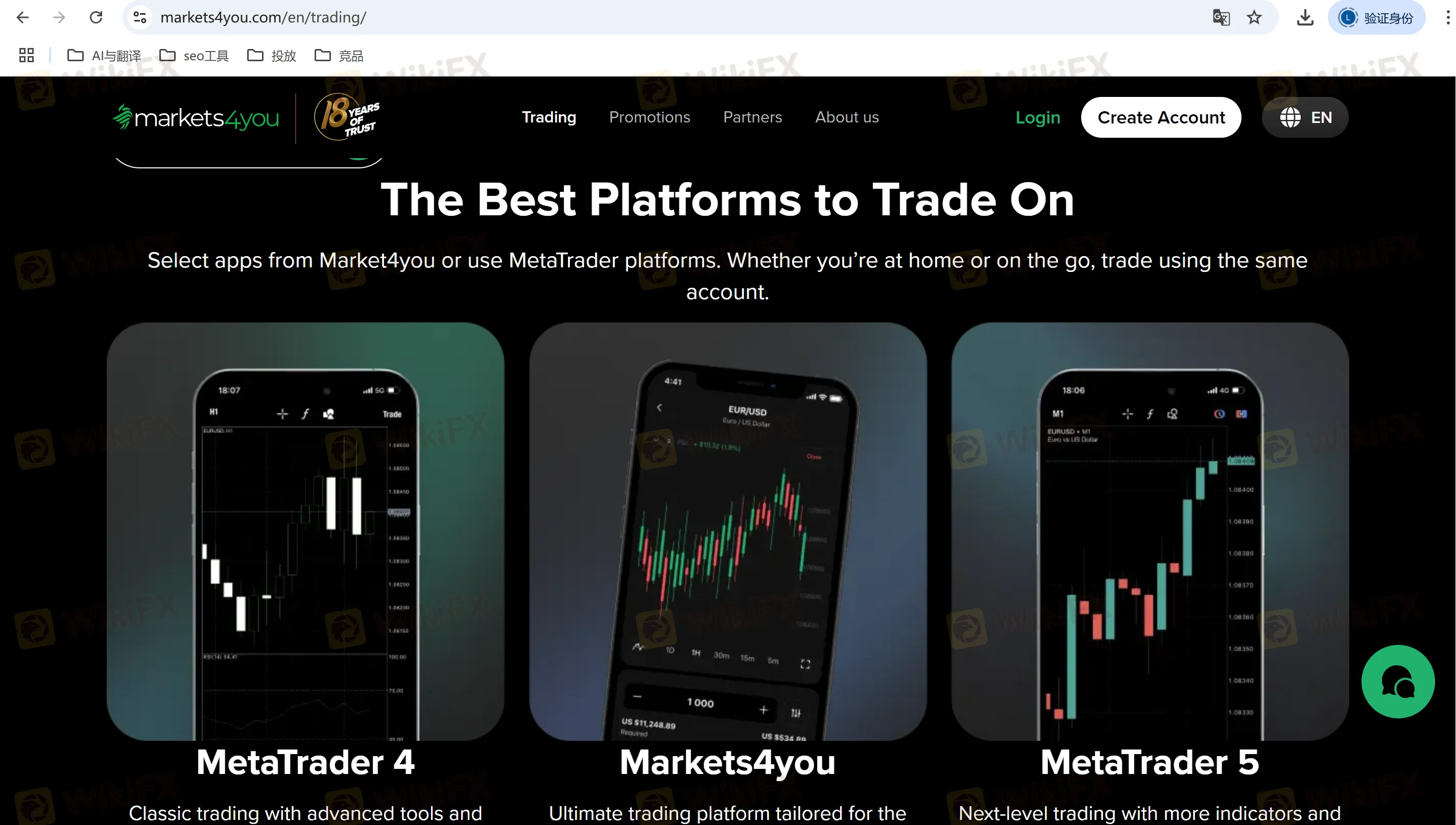 A4: No, Markets4you does not support cTrader or TradingView. It only offers MT4, MT5, and its proprietary platform.