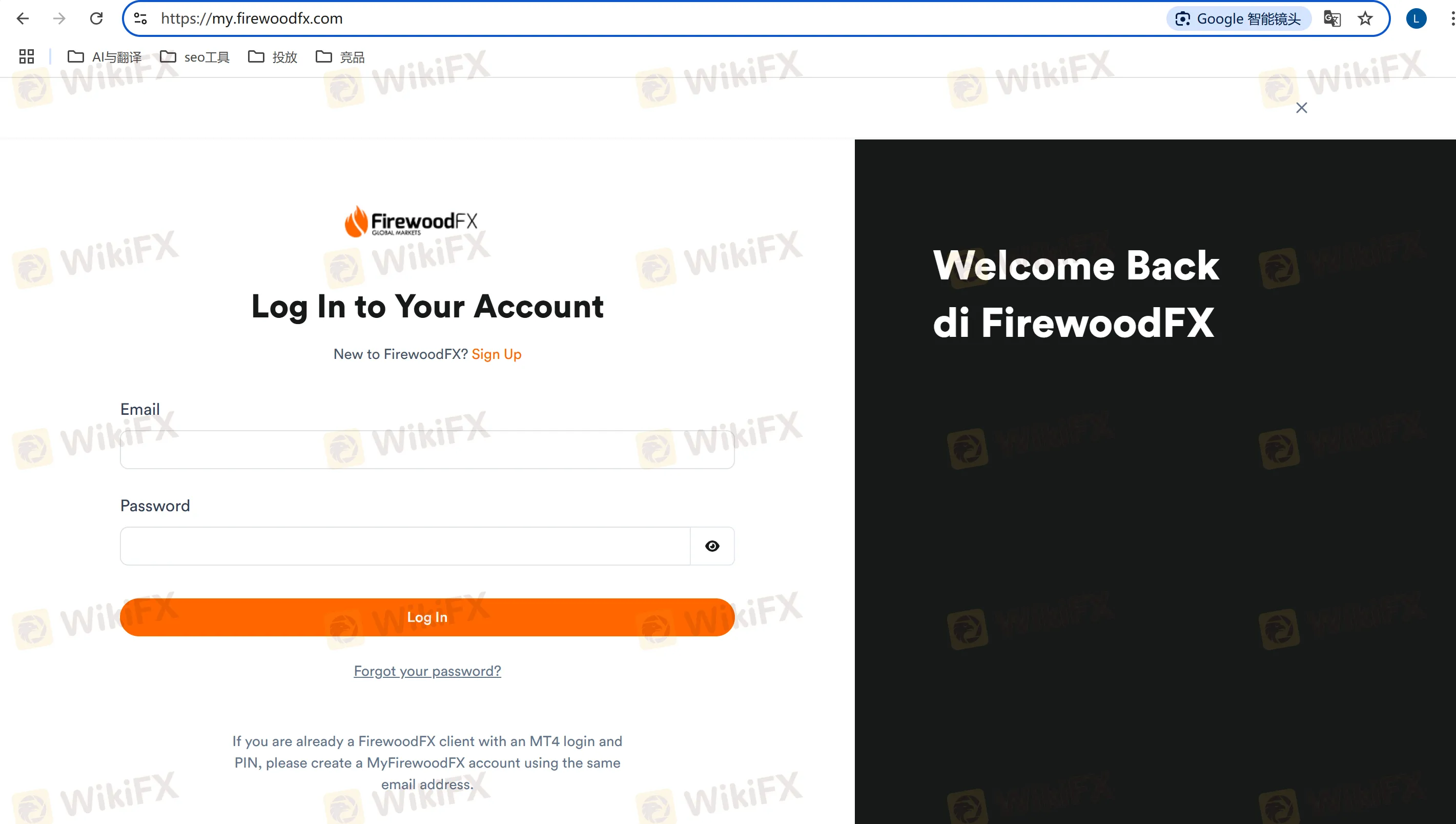 - Go to the official Firewood FX login page: https://my.firewoodfx.com/.
