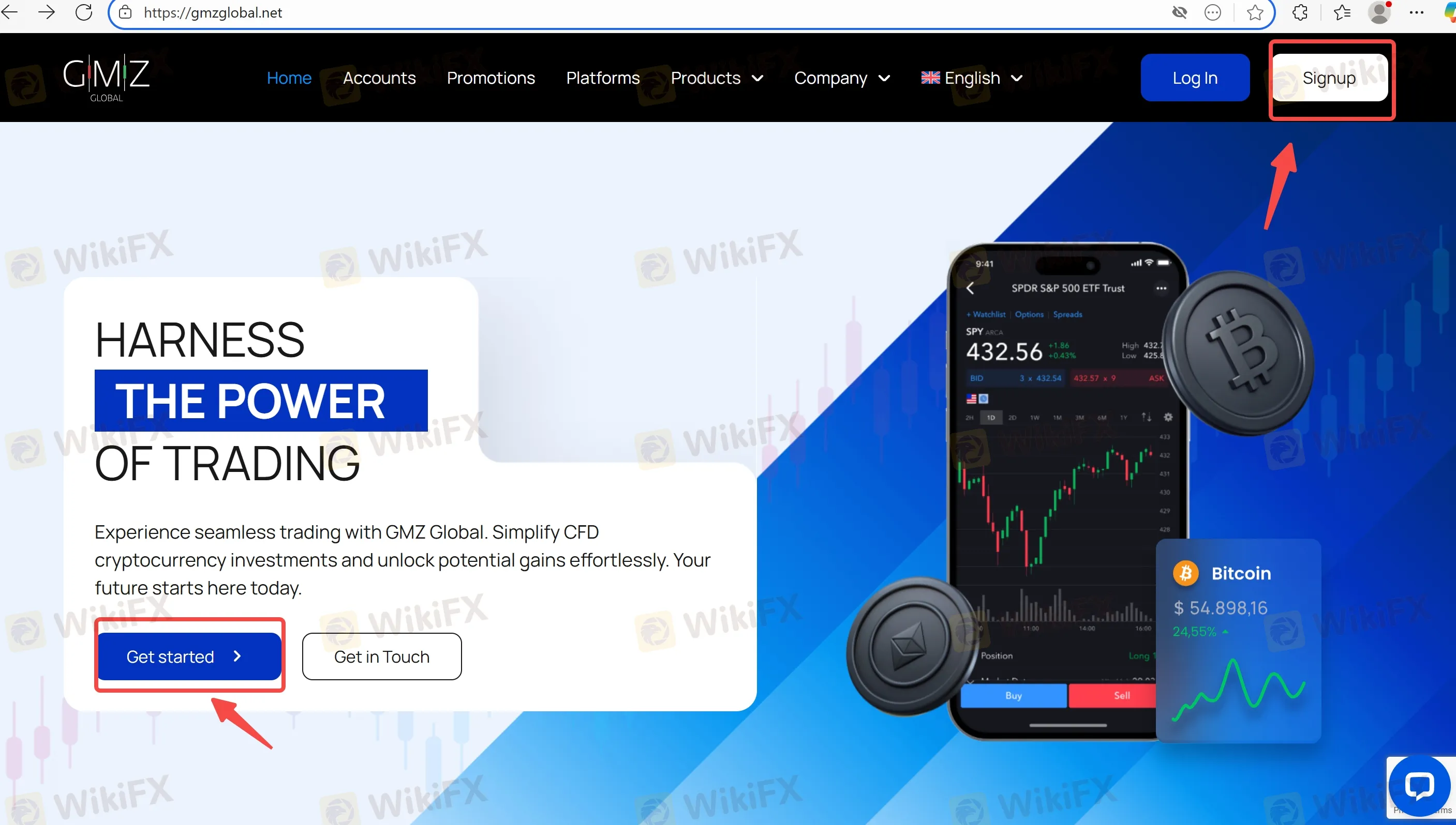 Step 1: Visit the official site gmzglobal.net and click on “Signup” or “Get started”.