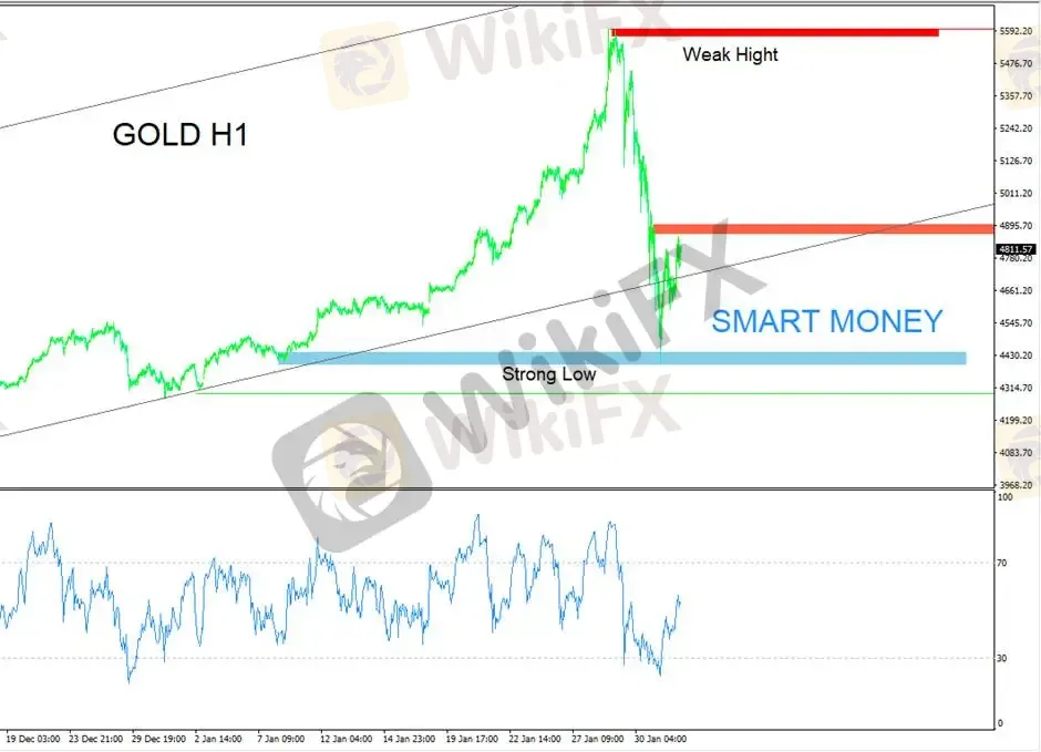 Critical Line: 4,360–4,404. This marks the floor of the recent sharp sell-off. A second breakdown would open the door toward the 4,000 level.
