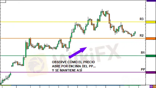 Aquí hay un ejemplo de lo que sucedió cuando el precio se mantuvo por encima del punto de pivote.