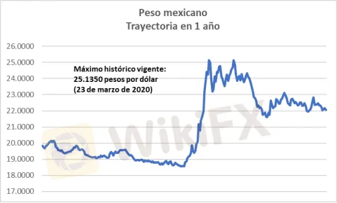 En abril el peso llegó a 25 unidades por dólar en el mercado interbancario, se ha recuperado paulatinamente y ahora mismo está alrededor de 22.3 pesos, pero la expectativa es que no se aprecie mucho más, sino que por el contrario, tienda a debilitarse en el mediano y largo plazo; no obstante su cercanía con la economía más importante del planeta y factores como los diferenciales en tasas de interés a favor del peso (aproximadamente 450 puntos base), son fenómenos que han generado y podrían volver a generar periodos de fortalecimiento del peso mexicano. En los mercados siempre dicen sobre el peso que este se encuentra tan lejos del mundo y tan cerca de Estados Unidos, para referirse a la inevitable influencia a la que la moneda mexicana siempre está sometida.