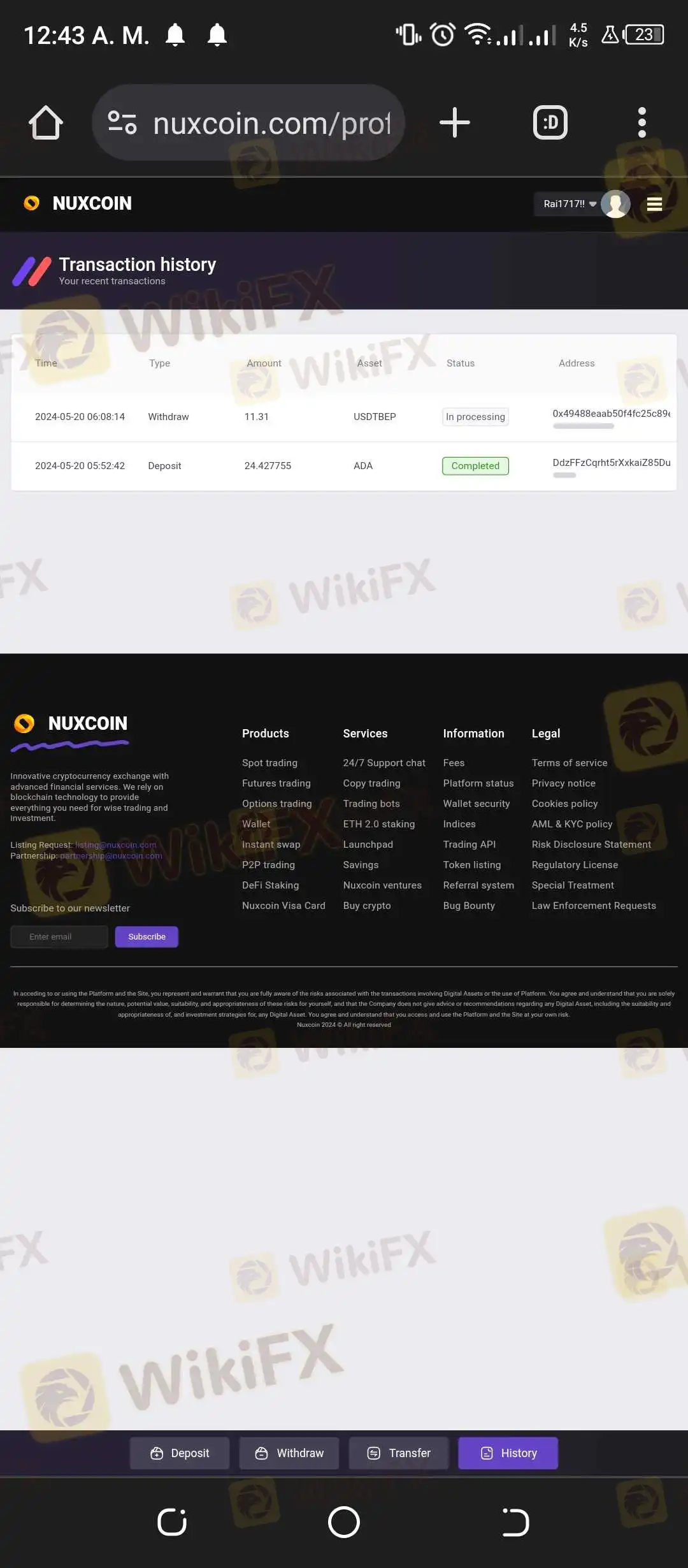Según el cliente, Nuxcoin asegura que los retiros se completan en un máximo de cinco minutos. Confiando en esta promesa, realizó su solicitud de retiro. Pero, dos días después, los fondos seguían sin llegar a su cuenta. “Cuando traté de retirar, ya han pasado más de dos días y no llega”, explicó.