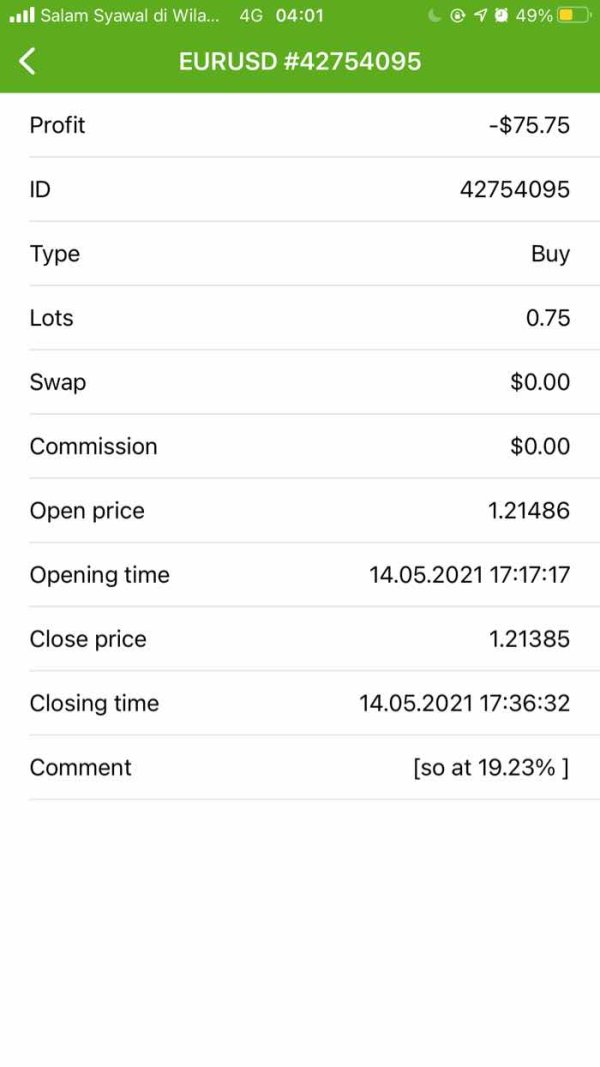 On 14/05 I have order eurusd at price 1.21486 but waiting the price going up suddenly your system has closed at position 1.21385 make me lose -75.75. Kindly please check and investigate why this happened. Thank you