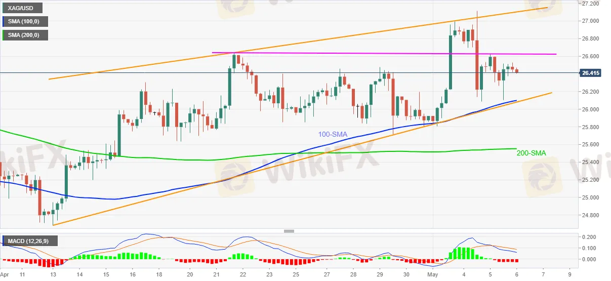 Balita sa Pananalapi ng WikiFX (Ika-6 ng Mayo taong 2021) - Pagsusuri sa Presyo ng Pilak : Ang mga pag-retiro ng XAG/USD na higit sa $ 26.00 sa loob ng panandaliang tumataas na kalso.