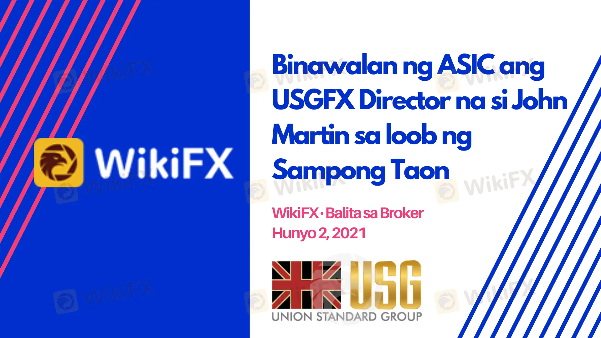 Si John Carlton Martin, Direktor at dating Tagapamahala ng ngayon na gumuho na Union Standard International Group Pty Ltd (USGFX), ay pinagbawalan sa pagbibigay ng mga serbisyong pampinansyal sa loob ng sampung taon ng regulator ng pamilihan ng pananalapi sa Australia. Bilang karagdagan, siya ay na-disqualipikado mula sa pamamahala ng anumang korporasyon sa loob ng limang taon.