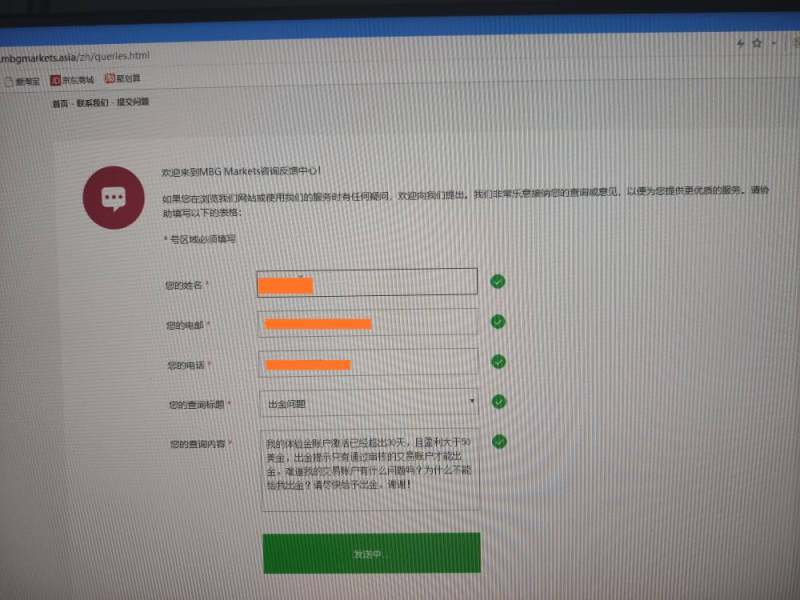 我在mbg平台注册了体验金真实交易账号,通过稳定获利来出金,结果出金的时候提示说:只有通过审核的交易账号才可以出金,很明显这是有问题的,审核不通过怎么会有交易账号呢?之后我发送邮件也联系不上,显示的英文翻译是“失败”,然后就一直处于发送中。这平台根本就是无赖?