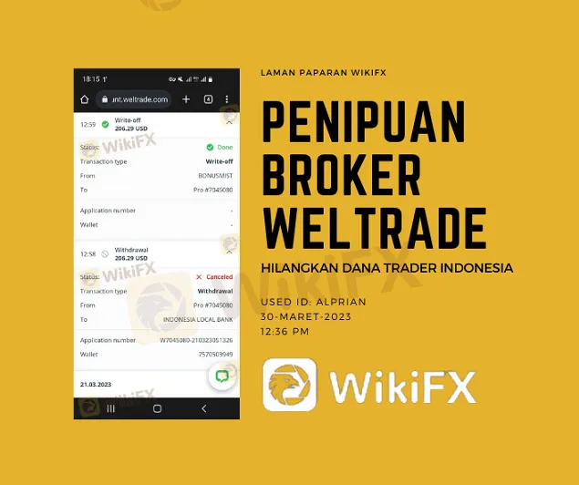 Ikhtisar:Indonesia WASPADA ! ini adalah keluhan ke-2 yang datang dari trader nusantara tentang penipuan yang dilakukan oleh broker Weltrade, dalam kurun waktu kurang dari 3 minggu.