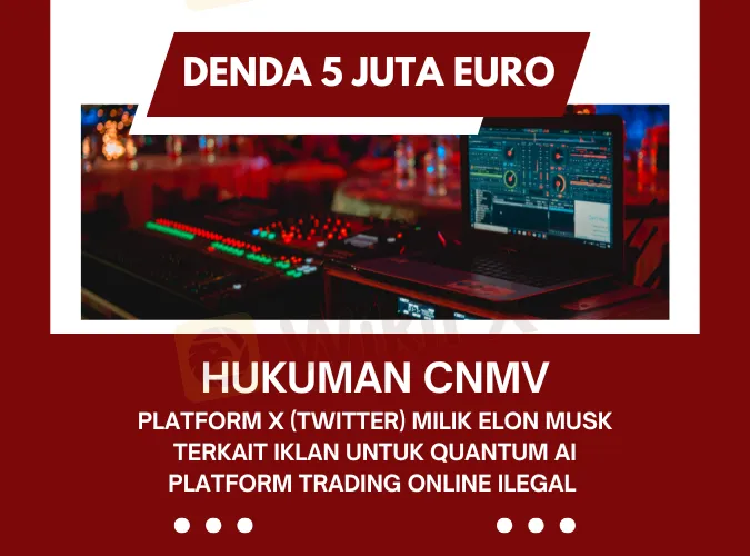 Platform media sosial X, yang sebelumnya dikenal sebagai Twitter, menerima denda dari regulator Spanyol CNMV sebesar €5 juta karena memfasilitasi atau menayangkan iklan yang mempromosikan layanan investasi/crypto yang tidak berizin, yakni QuantumAI.