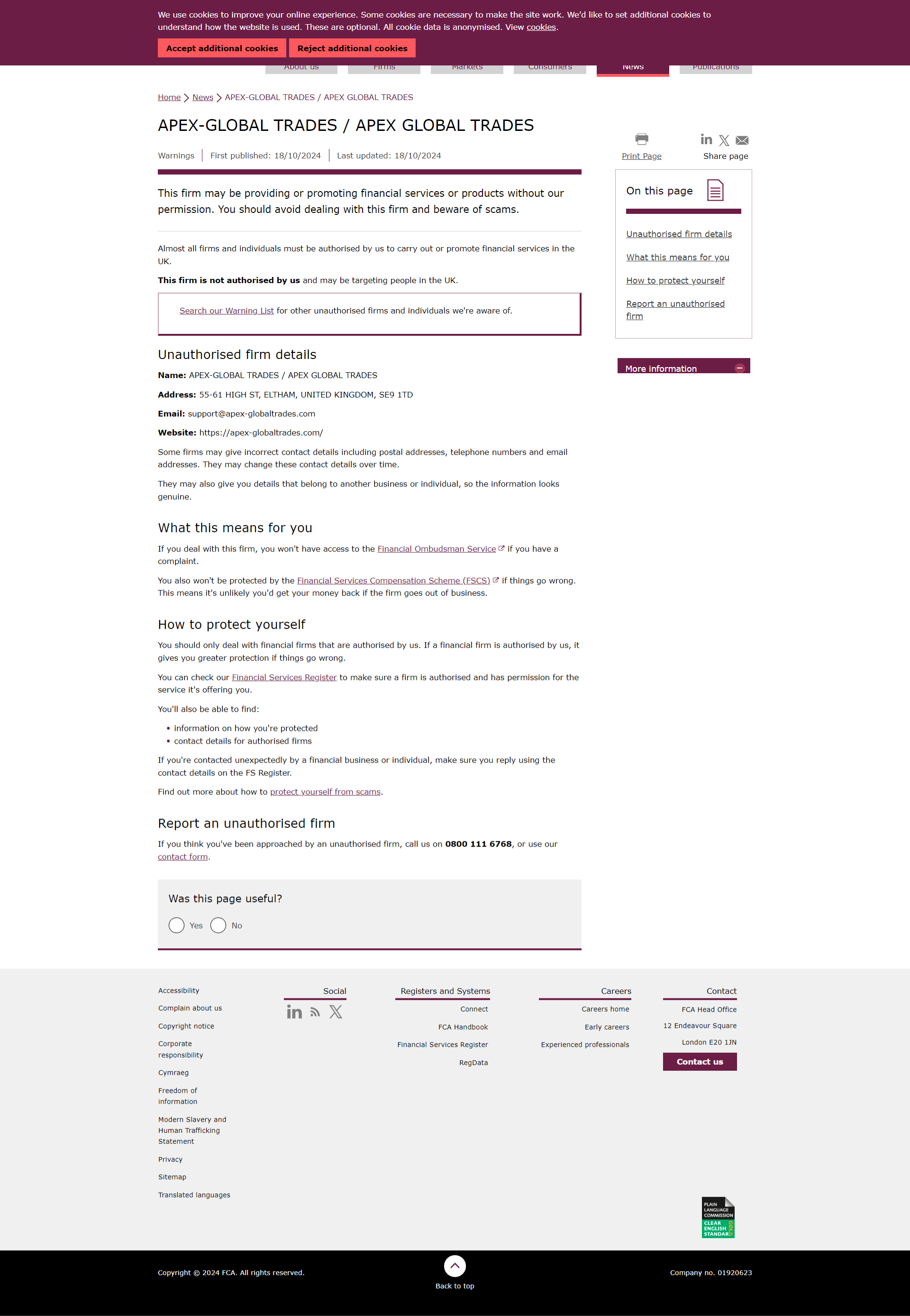 Daftar Peringatan FCA mengenai perusahaan yang tidak berwenang APEX-GLOBAL TRADES / APEX GLOBAL TRADES.