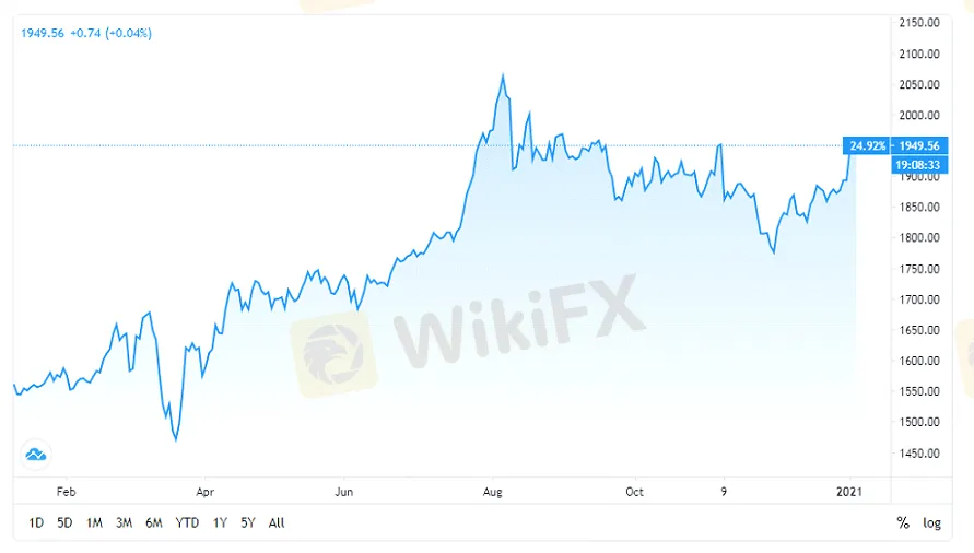 概要:低金利、経済支援策、米ドル弱気などの影響を受けて、金の値段は2020年で大幅上昇しました。それらの要因を受け、2021年の金の価格が引き続き上っていると見られています。