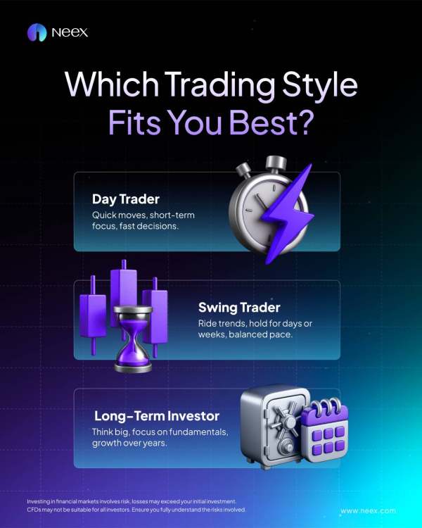 👉 Are you a Day Trader chasing short-term opportunities,👉 a Swing Trader riding trends,👉 or a Long-Term Investor focusing on big-picture growth?With Neex, you can choose the approach that matches your goals and personality.Start exploring your perfect trading style today ➡️ www.neex.comInvesting in financial markets involves risk, losses may exceed your initial investment. CFDs may not be suitable for all investors. Ensure you fully understand the risks involved.#TradingStyles #DayTrading #SwingTrading #InvestSmart #NeexInsights #TradeYourWay
