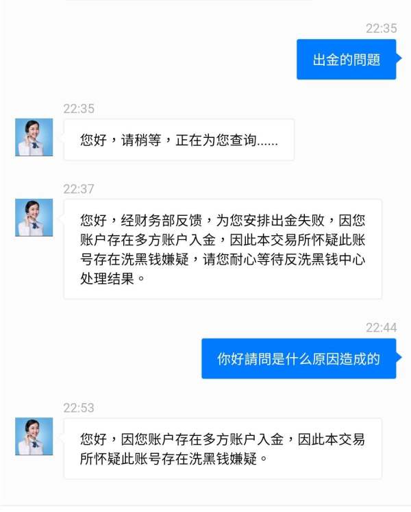 由一位女性朋友,介紹認識做美金平台的人,剛開始前兩次都順利出金,去做外匯指定時間內都沒有,虧損狀態,對方給了一個專案,彩金回饋9999美金,需入5.2W,完成後又是會員加入要38888美金的問題,時間內沒完成需負擔總金額10%,又補完要出金了,平台說流水號不夠×5次(全部要出金的時候都同樣的話)又在做美金,歐元,日元外匯交易流水號,都賺到錢,對方有時說押漲,可是我就會按錯,按跌,完全沒輸到任何錢,在最後這次流水號做好了,款項來到了221,345元美金就,要出金謝,平台給了一個多方入帳,洗黑錢嫌疑的名稱,無法出金,需補20%,44269美金做擔保,7日內審核通過之後,沒有任何嫌疑,才會把擔保金44269美元歸還,其於221,345美元還是無法出金