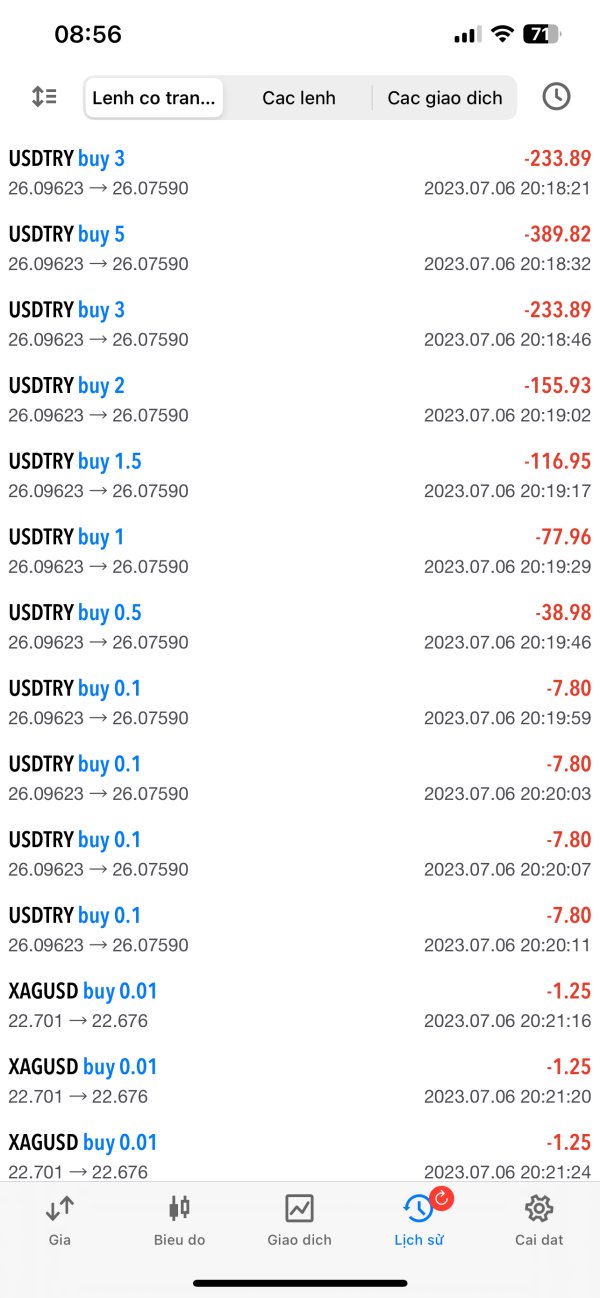 Đêm 5/7/2023, rạng sáng 6/7/2023, sàn cố ý vào lệnh làm cháy tài khoản của tôi (có gần 1.400$)