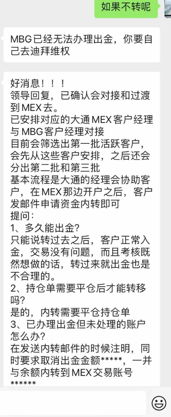 MBG无法出金,让转到MEX,也是不能出金只能入金。怎么办