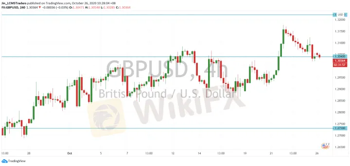 Em geral, o GBP/USD tem tendência de subir alta. Recentemente, GBP/USD tendeu para a zona de suporte de 1.30400.
