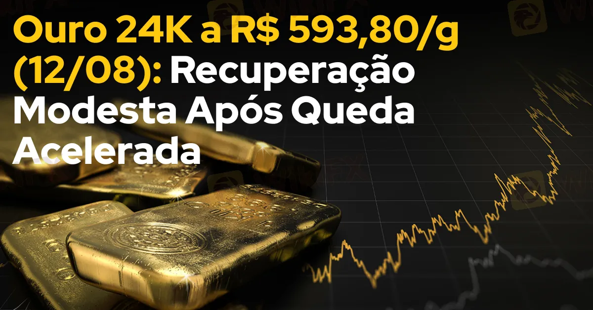 Ouro 24K a R$ 593,80/g (12/08): Recuperação Modesta Após Queda Acelerada