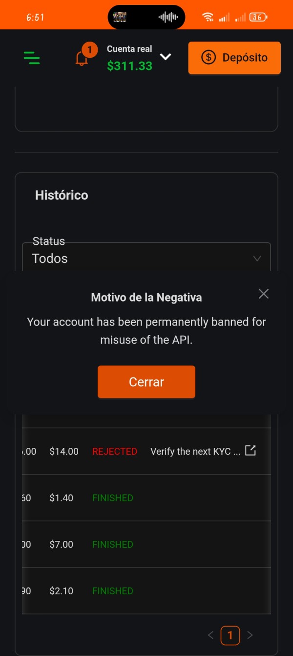 Es una estafa, no permite retiros y esta baneando a usuarios así como me pasó a mi , Estimado usuario, le informamos que, después de un análisis técnico y de cumplimiento realizado por nuestro equipo de seguridad, las actividades de automatización colectiva y el uso indebido de la API de la plataforma se han identificado entre los usuarios vinculados a este tipo de operación. De acuerdo con las directrices establecidas en la Cláusula 5A: el uso de la API del proveedor de tecnología, está estrictamente prohibido utilizar la API para ejecutar operaciones automatizadas en múltiples cuentas, replicar pedidos en red o participar en cualquier forma de automatización colectiva que comprometa la estabilidad e integridad del sistema. Como se estipulan contractualmente, todas las cuentas directa o indirectamente relacionadas con estas actividades estarán prohibidas permanentemente, lo que dará como resultado: suspensión inmediata del acceso a la plataforma y