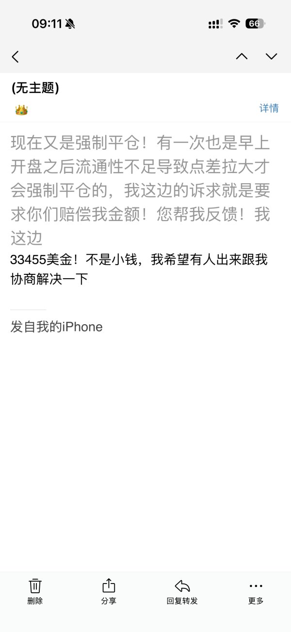 强制平仓,在我保证金充裕的情况下,账户直接给我清零了,然后邮箱客服装死不回复信息,血本无归!太恶心了