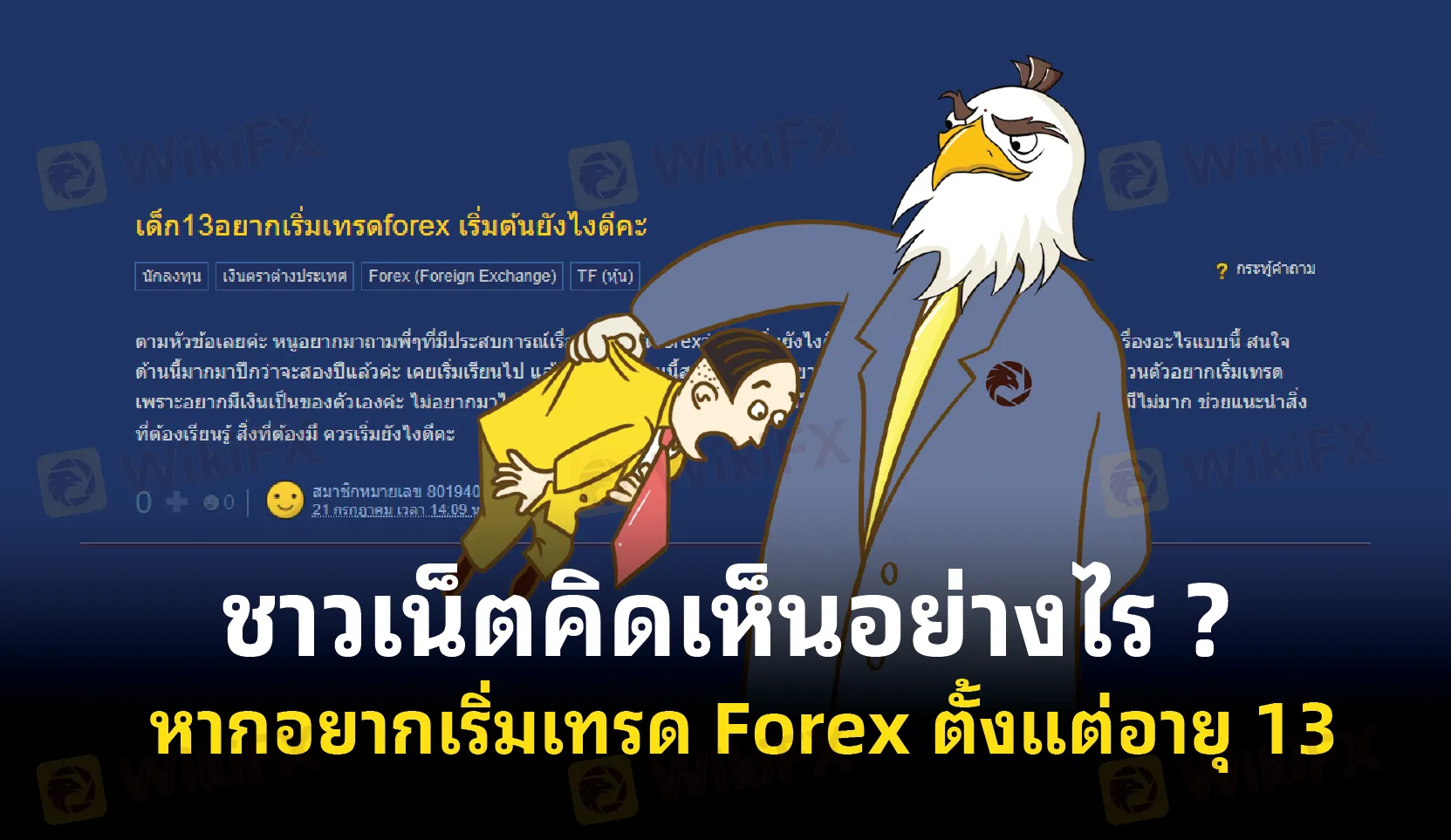 เมื่อไม่กี่วันที่ผ่านมาแอดเหยี่ยวได้ไปส่องนักเทรด Forex แพลตฟอร์มโซเชียลมีเดียหนึ่งมา แล้วพบกระทู้คำถามจากชาวเน็ตท่านหนึ่งที่มีคำถามว่า “เด็ก13อยากเริ่มเทรดforex เริ่มต้นยังไงดีคะ” 13 ปี ก็คือเด็กคนหนึ่งที่พึ่งจะเข้าเรียนระดับมัธยมต้นเท่านั้น ซึ่งทำให้แอดเหยี่ยวคิดได้เลยว่าโลกในสมัยนี้ไปไวมาก สมัยแอดเหยี่ยวอายุ 13 แอดเหยี่ยวยังแอบแม่ไปเล่นร้านเกมอยู่เลยครับทุกคน เอาละเมื่อมีคำถามแบบนี้มา ทำให้แอดเหยี่ยวสงสัยเลยว่าพี่นักเทรดจะแนะนำน้องยังไง ตามแอดเหยี่ยวมาเลยทุกคน