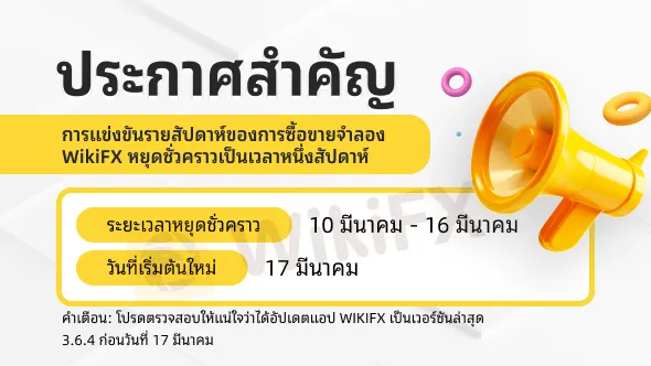 เนื่องมาจากการอัปเกรดผลิตภัณฑ์ที่กำลังจะมีขึ้นเพื่อปรับปรุงประสบการณ์จำลองการซื้อขายโดยรวมของคุณ การแข่งขันจำลองการซื้อขายประจำสัปดาห์ของ WikiFX จะถูกระงับชั่วคราวตั้งแต่วันที่ 10 มีนาคมถึง 16 มีนาคม การแข่งขันจะกลับมาดำเนินการอีกครั้งในวันที่ 17 มีนาคมพร้อมกับการปรับปรุงต่างๆ มากมาย