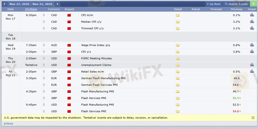 ปฏิทินข่าว Forex และเหตุการณ์สำคัญประจําสัปดาห์วันจันทร์ที่ 17 พฤศจิกายน 2568