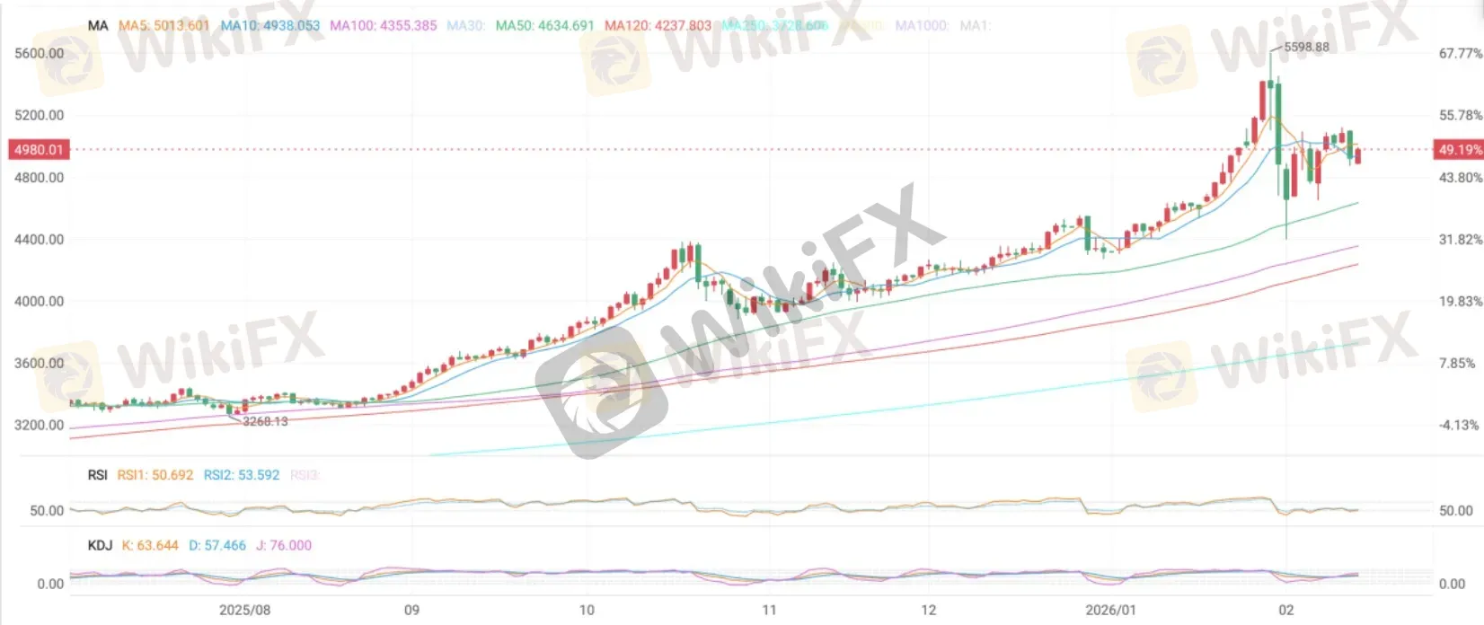 บทคัดย่อ:ภาพรวมตลาดจากการติดตามของ ETO Markets เมื่อวันพฤหัสบดีที่ 12 กุมภาพันธ์ ราคาทองคำสปอตร่วงแรงถึง 3.2% หลุดระดับจิตวิทยาสำคัญที่ 5,000 ดอลลาร์ต่อออนซ์ โดยระหว่างวันไหลลงแตะจุดต่ำสุดที่ 4,878 ดอลลาร์ต่ออ