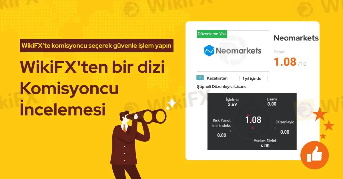 Neomarkets resmi ticaret lisansını AFSA-LA-2023-0003 Kazakistan olarak belirtmiştir. Bu konuyu doğrulamaya çalışan WikiFX Kazakistan yetkilileri, bu lisansla ilgili olarak net bir bilgiye ulaşamamıştır. Ayrıca kullandıkları ticari yazılımın da orijinal olmadığı doğrulanmıştır. Bundan dolayı WikiFX bu komisyoncuya 1.08/10 gibi düşük seviye bir puan vermiştir.
