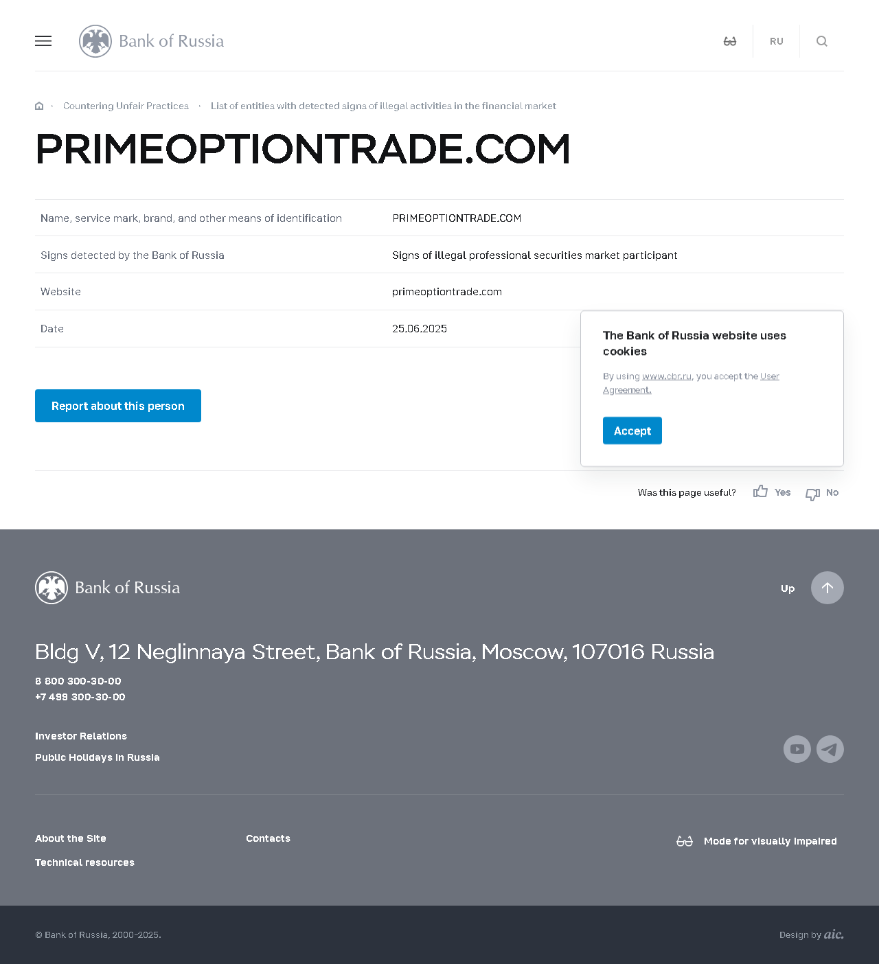 Finans piyasasında yasa dışı faaliyet belirtileri tespit edilen varlıklar listesi PRIMEOPTIONTRADE.COM.