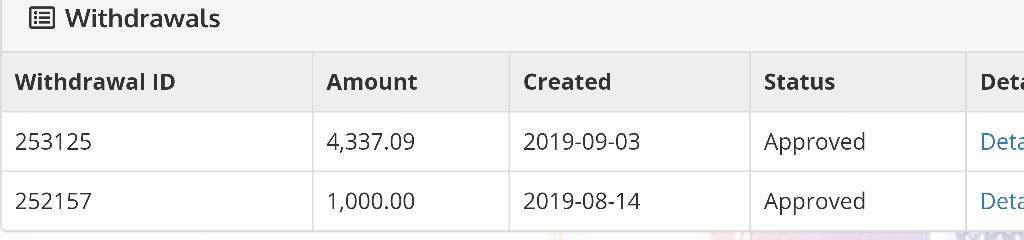 I trade in Triumph 4 month. My account is (1387552) Everything was fine until request for withdrawal I'm waiting for my money it is more than a month. I received only a deposit a few days ago. Very bad support, don`t answer me. My profit is 3337$ I don 't recommend invest here your money. How I will make my profit I will definitely write here Withdrawal ID Amount Created Status Detail 253125 4,337.09 2019-09-03 Approved Detail 252157 1,000.00 2019-08-14 Approved Detail