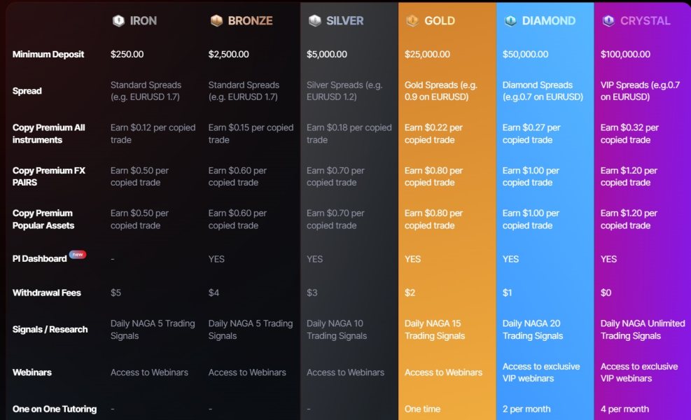 Range of accounts is fascinating out here. First of it's not a habitual one, as they are even called vip account levels. Secondly, it looks like this range focuses more on copy trading, cause huge benefits of using top accounts for strategy providers are obvious. Nevertheless it's all good, it look balanced enough, so both rookies and seasoned pros can trade here profitably.