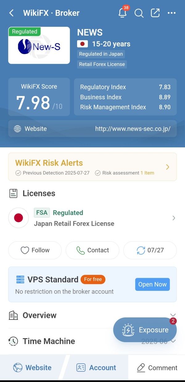 Despite being regulated, NEWS broker has a risk alert and exposure reports, raising concerns about its reliability. Proceed with caution.