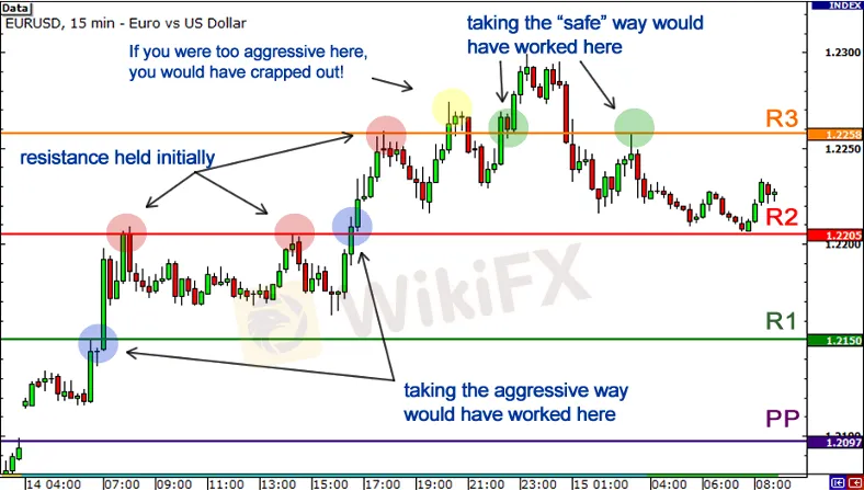 Ngoài ra, hãy quan sát cách khi một cặp tiền đảo chiều vào cuối ngày và phá vỡ mức R3. Đó là cơ hội để rút ngắn thời gian giá kiểm tra lại mức kháng cự đã chuyển thành mức hỗ trợ rồi chuyển lại thành kháng cự!