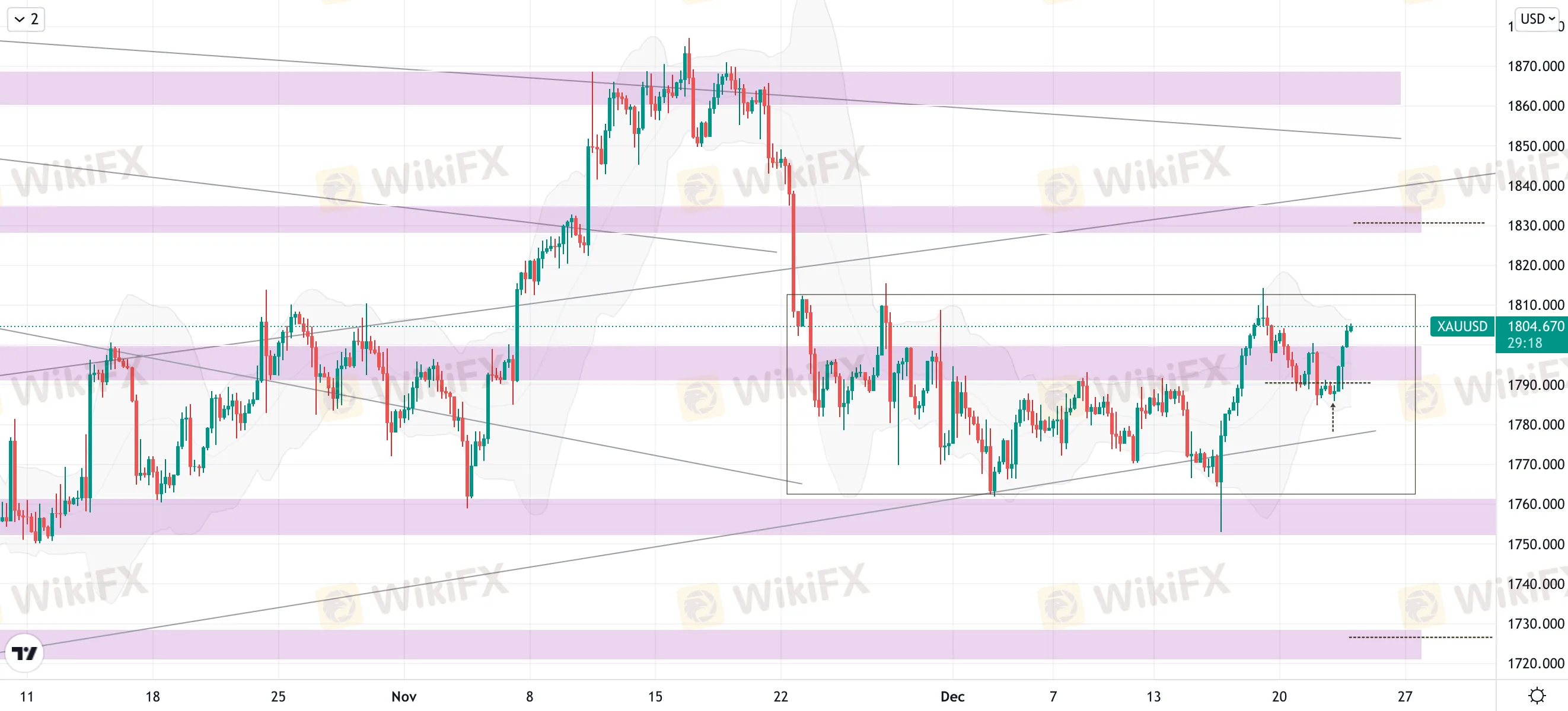 Vàng đã không thể tiếp tục đi xuống trong phiên vừa qua như kỳ vọng, áp lực mua trở lại quanh vùng 1790 và đẩy giá tái kiểm tra biên trên của chiếc hộp quanh 1815. Tiếp theo chúng ta cần quan sát kỹ hành vi giá quanh 1815, nếu xuất hiện tín hiệu giảm giá đáng chú ý, đây sẽ là cơ hội bán cho các anh em giao dịch range; ngược lại, nếu xuất hiện cú phá vỡ, giá có thể tìm đến kháng cự 1830-1840, các lệnh mua ngắn hạn có thể được cân nhắc.