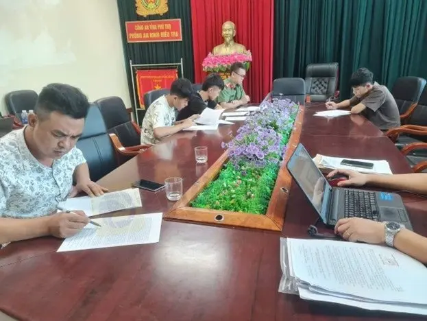 Các điều tra viên tổ chức họp án để đẩy nhanh tiến độ điều tra vụ án lừa đảo tiền kỹ thuật số - Nguồn: Công an tỉnh Phú Thọ