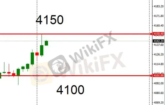 Có thể quan sát vùng kháng cự 4.150 USD/oz; nếu giá không vượt qua được vùng này, nhiều khả năng vàng sẽ dao động trong biên độ 4.100–4.150 USD/oz. Nhà đầu tư có thể áp dụng chiến lược giao dịch bán cao, mua thấp trong phạm vi này.